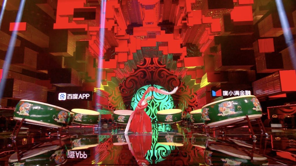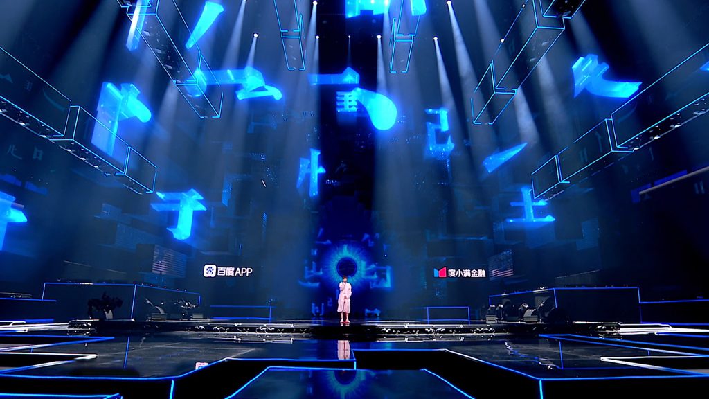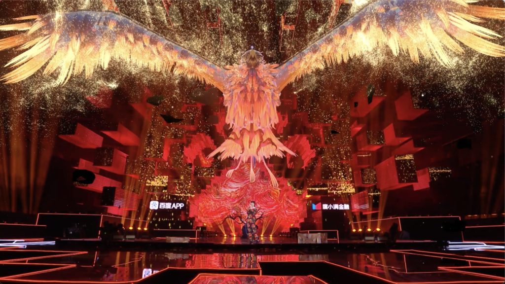 以“科技碰撞国潮,群星穿越古今”为slogan,利用“国潮科技”,注重视觉内容形式与造型独特的LED舞美造型结合,并根据部分节目表现所需选择AR、MR等技术形式配合,以多元视觉形式为“国潮”呐喊,展现“科技碰撞国潮,群星穿越古今”的独特魅力。